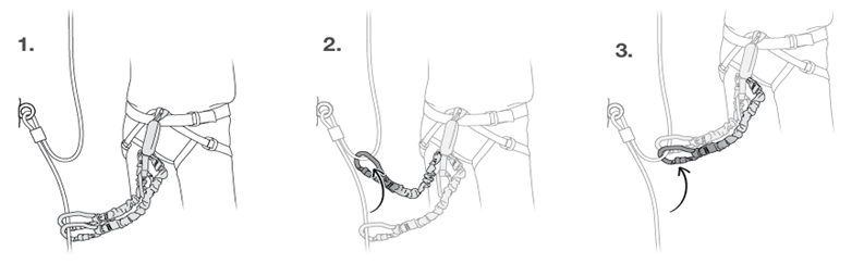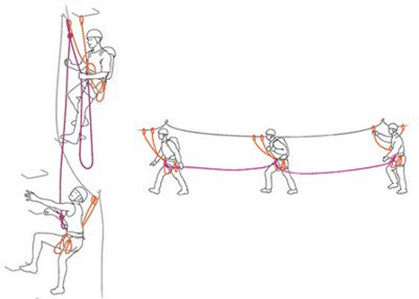 la un punct fix (piton, cablu otel, treapta metalica), ca in figura de mai jos: